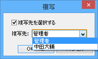 登録済みの見積書または注文書を呼び出して[複写]ボタンをクリックすると、[複写]ダイアログが表示され、[複写先]で複写するユーザーを選択することができます。